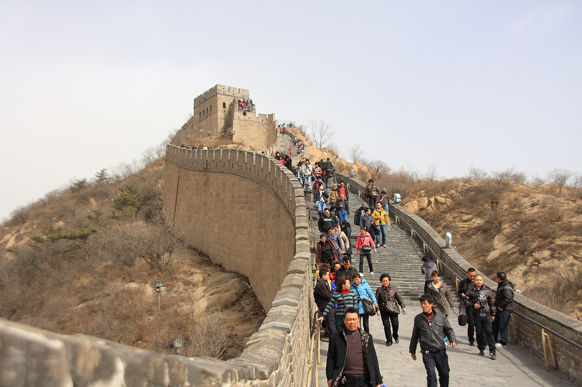 2011年3月17〜3月20日まで中国の北京に行ってきました! ![]() 万里の長城に向かう途中にあったパオです。モンゴル人の家ですね。。 ![]() 万里の長城に着きました。。 ![]() 恐ろしい程大きく、傾斜も半端ないです。 ![]() この傾斜・・注意しないと滑落する程です。 ![]() 登って来た所を振り返り撮影。高いです。 ![]() 登っても登っても遥かに長城は続きます。 ![]() さすが宇宙から唯一見える人口建造物の万里の長城です。異民族の侵入を防ぐため1800年の歳月をかけて作られた城壁です。しかしこの試みは失敗だったそうです。。何故なら異民族が簡単に乗り越えてきたのだそうです。。。え。 ![]() 崖に作られたお土産屋さんです。 ![]() やっと入口付近に戻ってきました。下山してきたという感じです。北京の人から言わせると、万里の長城は登るものではなく見るものだそうです。確かに・・。納得。 ![]() お土産屋さんの中にいた金魚です。デカすぎないですか? つづく |
