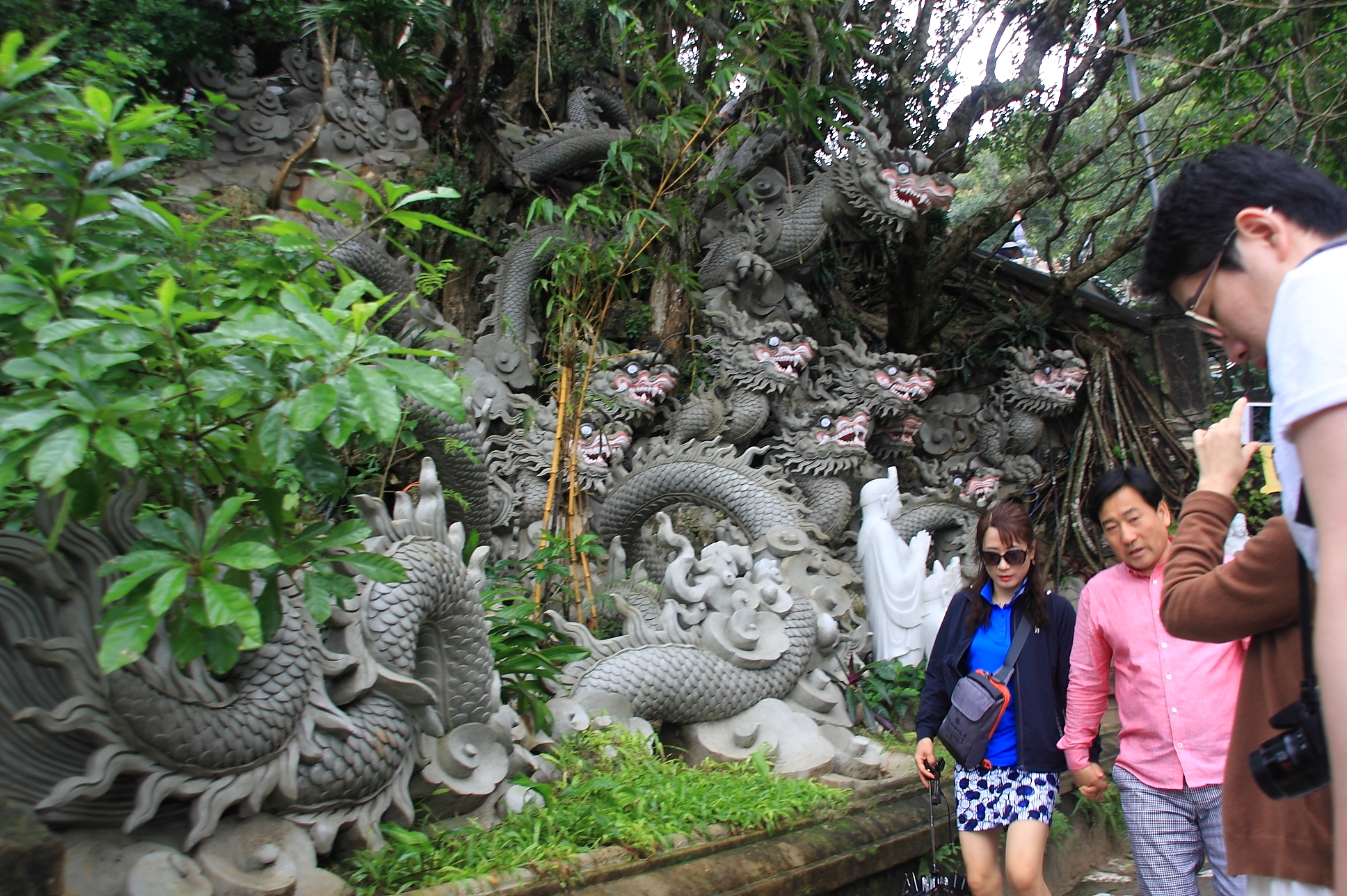 2016年12月30日〜2017年1月4までベトナムのダナンに行ってきました! ![]() 次の日、五行山というところに来ました。ホイアンに向かう道にあります。 ![]() ここは山全体が大理石でできているそうです。 ![]() 蛇でなく龍です。。 ![]() 突然現れるお釈迦様。東南アジアはいつもそうです。 ![]() こんなとこにも龍の大群が・・。 ![]() 中国的ですね・・こういうの好きです。 ![]() 6重の塔。上に行くほど屋根が小さくなります。東寺の5重の塔はほぼ屋根の大きさが同じです。 ![]() 鍾乳洞に入ります。入口になんだか手抜きのお釈迦様が・・ ![]() 真っ暗ですが、上から光が差し込んでいます。 ![]() ところどころに祭壇があります。 ![]() かなり深い所に来ましたが、上から光が差し込む穴があるのでなんとか歩けます。 ![]() 鍾乳洞の一番深いところに来ました。祭壇がいくつもあります。 ![]() 神秘的です。 ![]() 観音様かな? ![]() この階段を下りてきました。 つづく 始めへ |