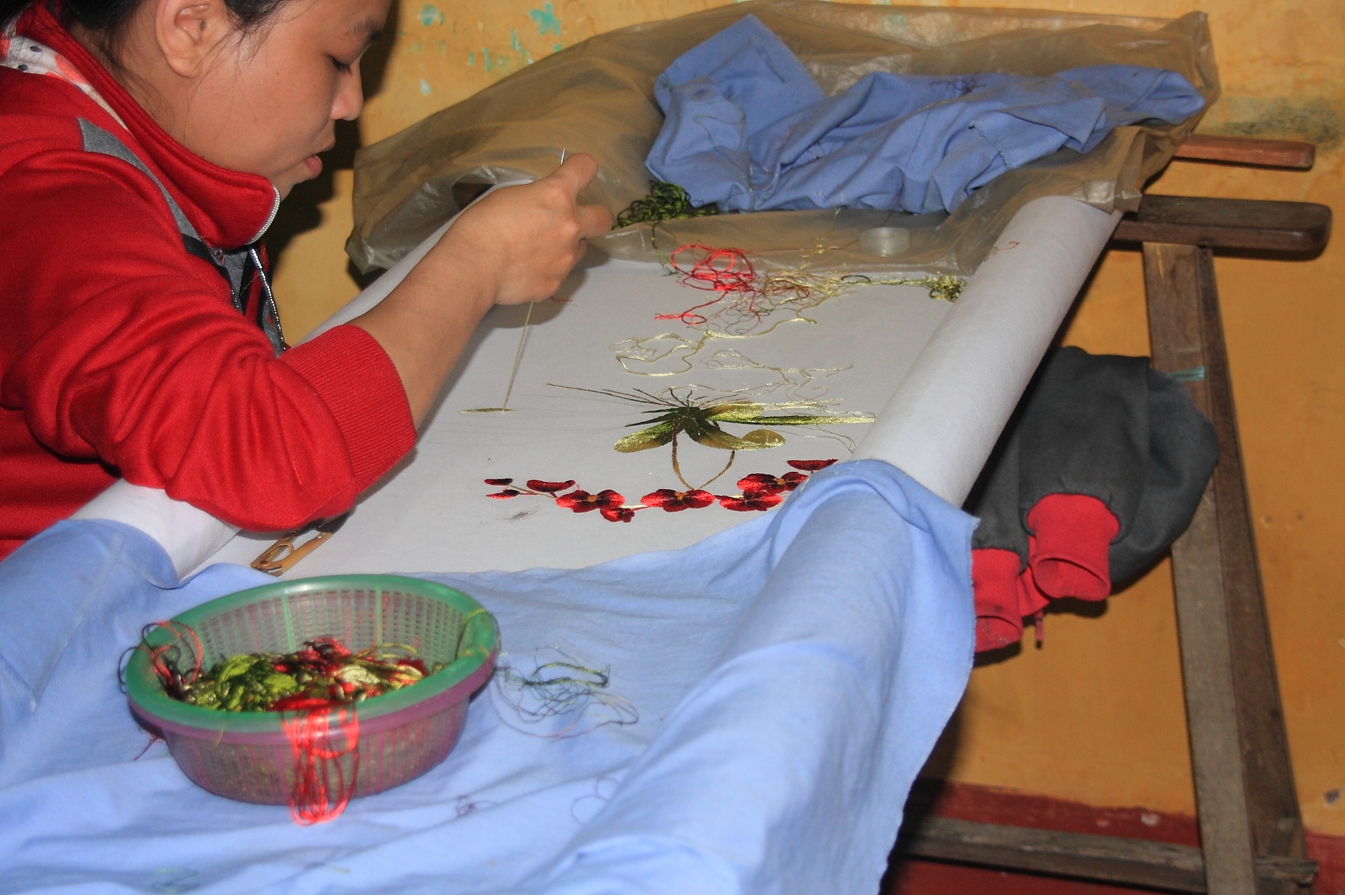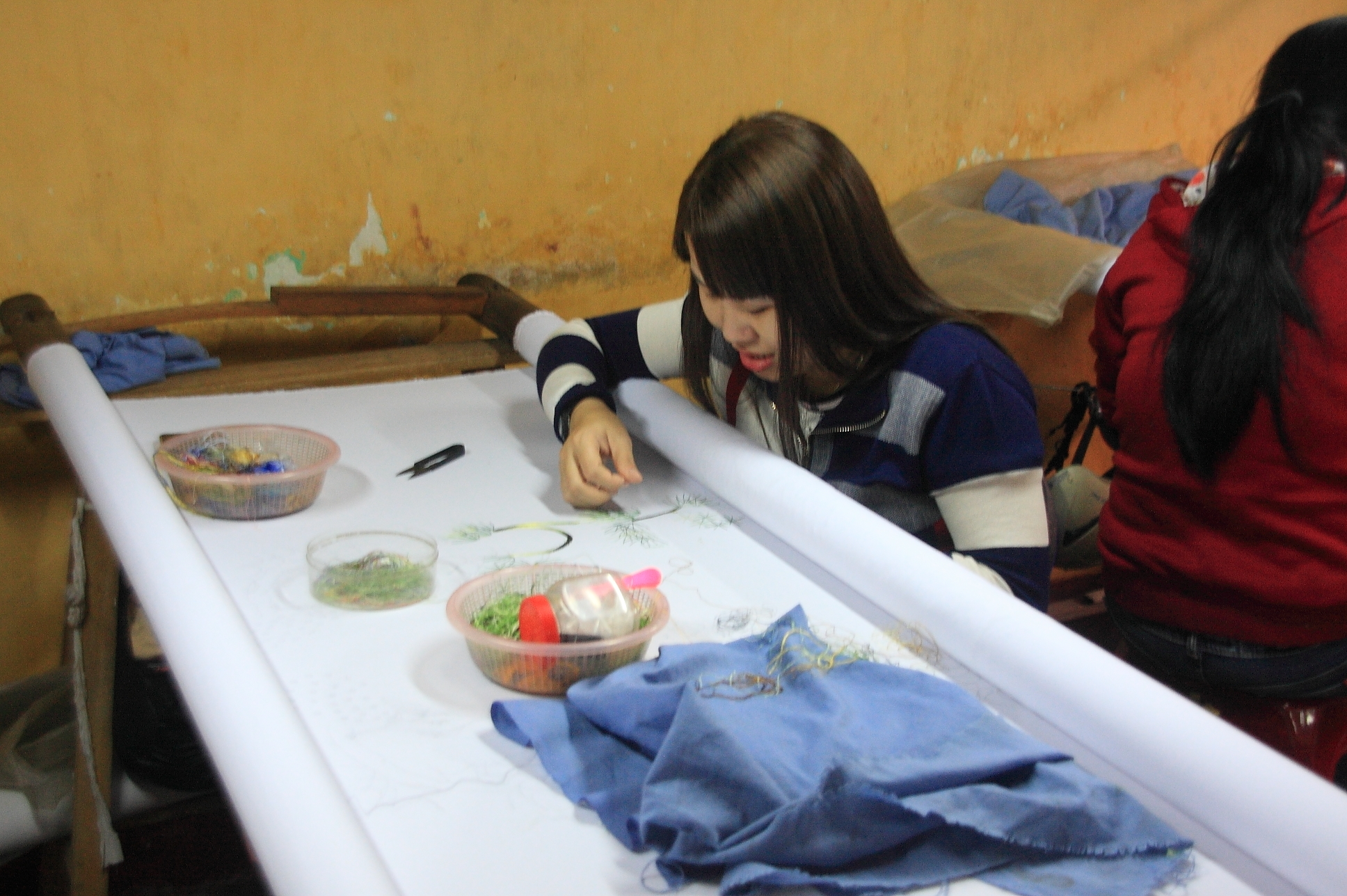 遊んでる感じで刺しゅうをしてます。でも凄い技術。 ![]()