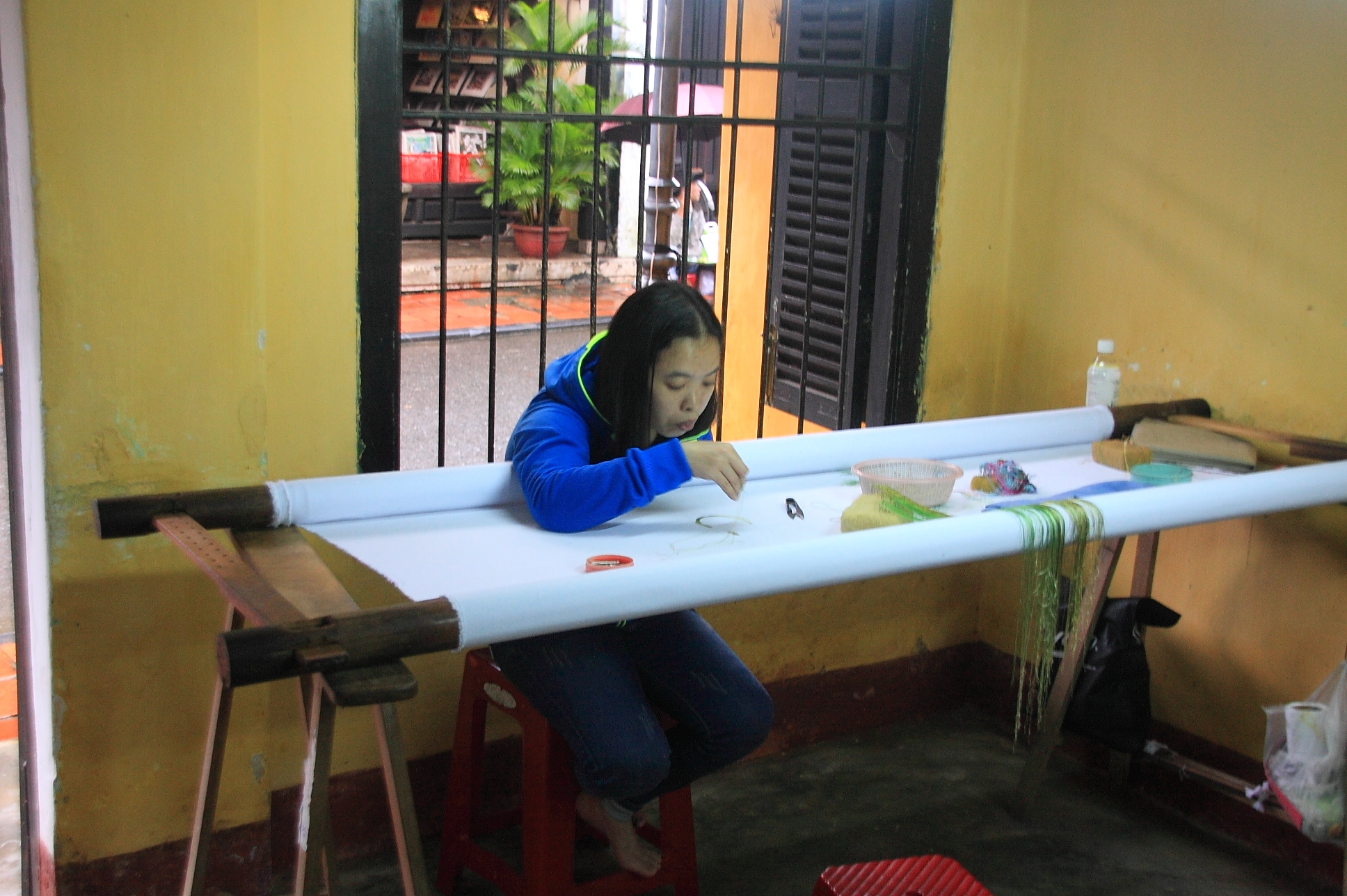 伝統工芸品の織物を作ってる現場でした。撮影して良いかと言ったらokで、女の子も少し恥ずかしそう。 ![]()
