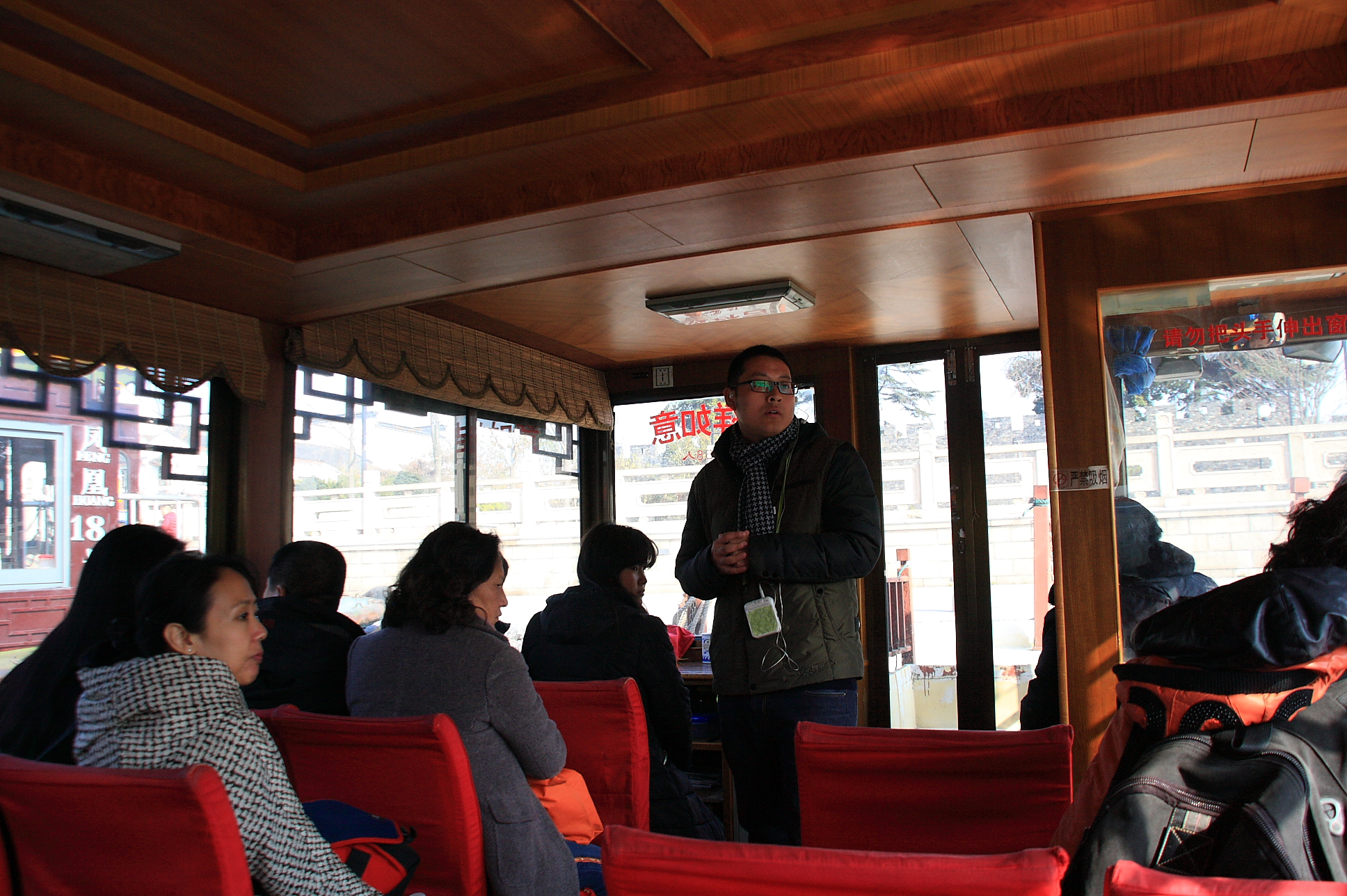 2014年12月30〜2015年1月4日まで中国の上海〜蘇州に行ってきました! いよいよ蘇州の水郷の町に到着 船に乗り込みます。全部中国語ww 東洋のベニスと呼ばれる風景が! 寺かな? すばらしいです。この辺で、前の方に座ってたおばちゃんから突然、どこから来た?と英語で話しかけられた。日本だと答えたら、オーーー。で終了。おばちゃんニコニコしてました。それ以外の英語を知らなかったようです。 一旦降ろされました。1時に戻ってこいとジェスチャーで・・ なんだここわ 中国の近代の流れが紹介されています。そうですね。かつて皆人民服を着てたんですよね。 中国も大きく変わりました。 寒山寺の鐵鈴關です。年季はいっとりますな。蘇州の呉の国は、春秋戦国時代、紀元前です。 読めません。 橋があります。 水郷の街並み 多分大昔の偉い人と思います。 そろそろ蘇州の旅も終わり。 蘇州駅に着くころには気温が急激に下がり、マイナス4℃です。上海に戻ります。 始めへ |