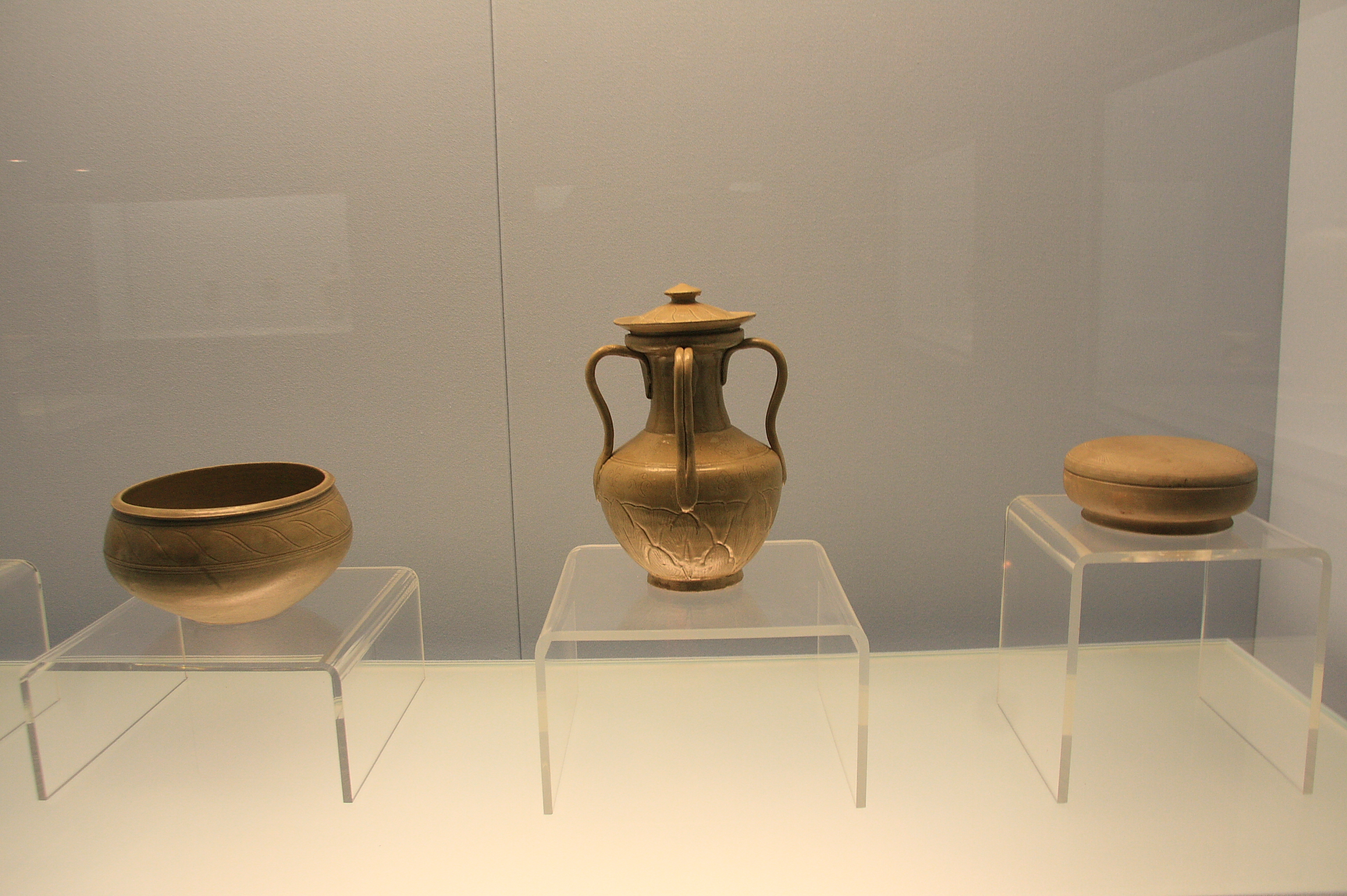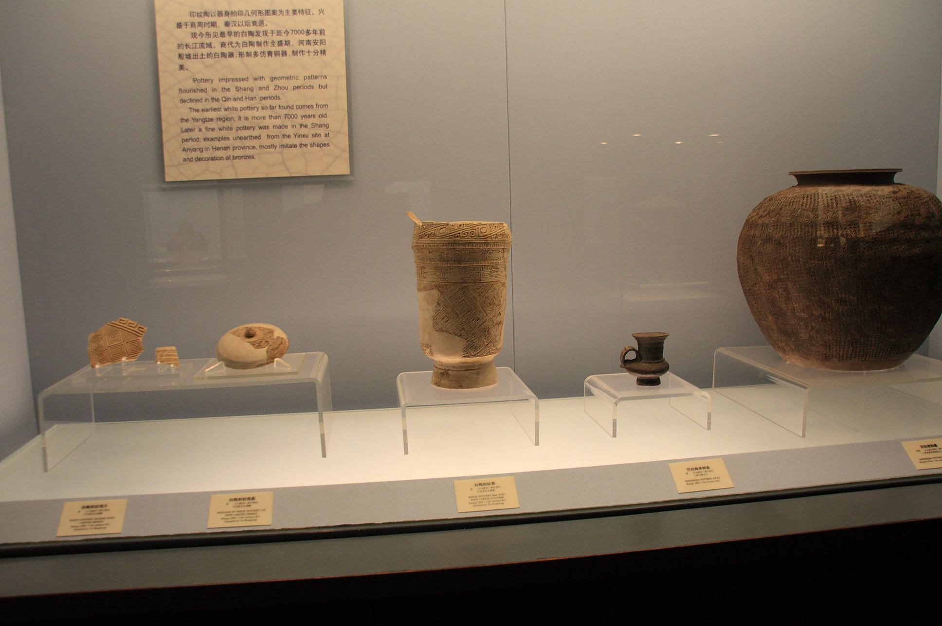 私の感じた所、始皇帝が統一を果たしたあたりから作風が変わります。後ろに書いてある説明には、漢の時代には幾何学的な装飾は姿を消したと書かれています。